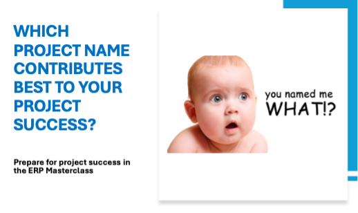 In the ERP Masterclass, you'll learn how to create a project name that actively contributes to your project's success, along with many other important success and failure factors.